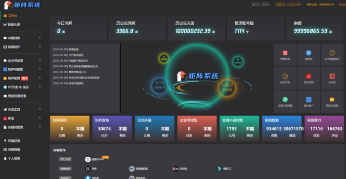 矩阵系统账号演示:支持抖音,快手,b站,视频号